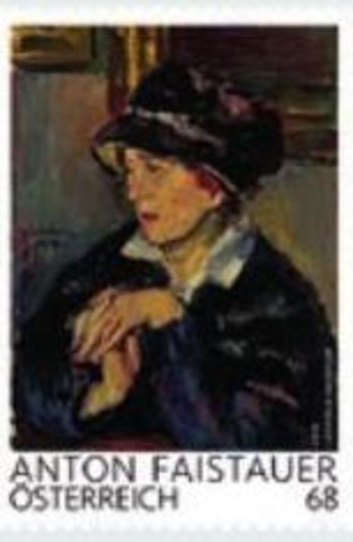 名称:奥地利8月28日发行安东法伊斯陶尔作品《带黑帽子的女人》邮票