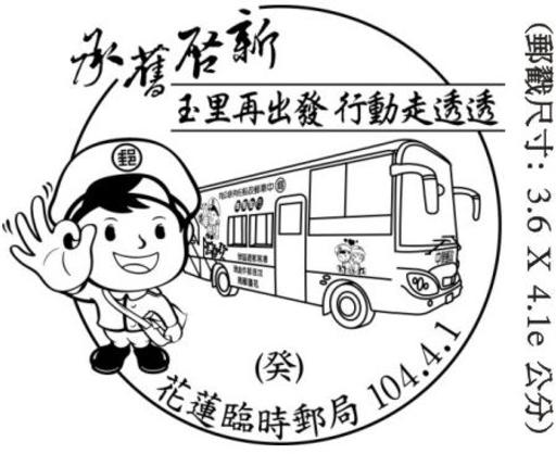 名称:4月1日花莲“玉里再出发 行动走透透”临时邮局戳