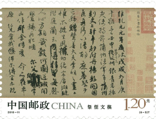 行书产生于汉代,发展成熟于魏晋,是介于草书和楷书之间的一种书体。其特点是简化了楷书笔画,改变了楷书笔形,草化了楷书结构,但较之草书和楷书更适合日常应用。《兰亭序》,纸本,行书,东晋王羲之书,北京故宫博物院藏。此帖是王羲之与友人在会稽山阴(今浙江绍兴)兰亭举行“修禊”之典时所作诗序。其书法用笔道丽爽健,结体潇洒秀美,风格飘逸灵动 ,体现了王羲之所创造的新书体风貌,对后世影响深远。《黄州寒食诗》,纸本,行书,北宋苏轼书,台北故宫博物院藏。此系两首五言诗,为作者贬居黄州后生活困顿、心境悲凉的真实写照。此帖笔意自然,用笔以侧锋为主,点画肥重,体势宽博,圆劲而有韵味,代表了苏轼行书的最高成就。《祭侄文稿》,麻纸本,行草,唐代颜真卿书,台北故宫博物院藏。此稿是颜 真卿为祭奠在“安史之乱”中殉难的侄子季明而作。书家用笔果断自然,大量使用渴笔、枯墨,体现内心哀痛之情,笔势飞动,姿态横生,达到了流露真情、撼人心魄的艺术效果。