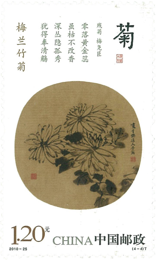 梅、兰、竹、菊分别以傲、幽、坚、淡的品格并称“四君子”,表现了中国古代文人所推崇的气节风骨,以及对生命的感悟。梅花属落叶乔木,干呈褐紫色,花于寒冬先叶开放,傲雪凌霜,香味沁人。梅花自古被认为是高洁傲岸品质的象征。兰花为多年生草本植物,其叶片绰约多姿,花朵高洁淡雅,香气悠远芬芳。兰花幽雅空灵,香远益清。竹为常绿浅根植物,枝干端直挺 拔,碧叶经冬不凋。竹常被人们比作虚心有节、坚贞不移的象征。菊花为多年生草本植物,性耐寒,花色丰富,姿容飘逸。菊花的清淡神韵和耐寒特质自古为文人所欣赏。