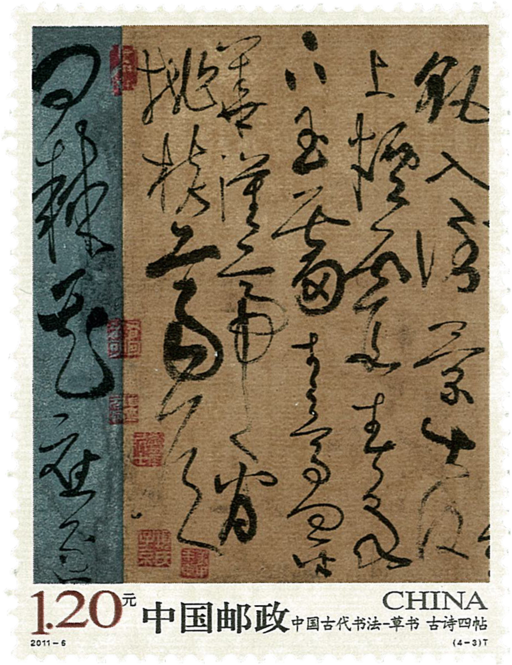 草书起源于秦汉之交,成熟于东汉,东晋时达到高峰,到唐代又发展出新样式。其形体简约、笔势连绵,对汉字笔画进行了连带、省略、象征等处理。《平复帖》为我国存世最早的“章草”名帖,是西晋文学家陆机的书信,麻纸本,现藏故宫博物院。《初月帖》为“书圣”王羲之和友人往来的书信,原迹失传,此为唐人摹本,现藏辽宁省博物馆。《古诗四帖》为唐代书法家张旭书写的古诗,纸本,长卷,现藏辽宁省博物馆。《自叙帖》为唐代僧人书法家怀素的自述,纸本,长卷,现藏台北故宫博物院。