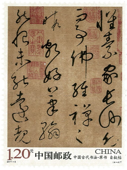 草书起源于秦汉之交,成熟于东汉,东晋时达到高峰,到唐代又发展出新样式。其形体简约、笔势连绵,对汉字笔画进行了连带、省略、象征等处理。《平复帖》为我国存世最早的“章草”名帖,是西晋文学家陆机的书信,麻纸本,现藏故宫博物院。《初月帖》为“书圣”王羲之和友人往来的书信,原迹失传,此为唐人摹本,现藏辽宁省博物馆。《古诗四帖》为唐代书法家张旭书写的古诗,纸本,长卷,现藏辽宁省博物馆。《自叙帖》为唐代僧人书法家怀素的自述,纸本,长卷,现藏台北故宫博物院。