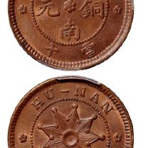 民国湖南铜元当十PCGS MS-64 RB:拍卖成交价格USD 1016美元。漂亮的巧克力色包浆。底有原铜光。