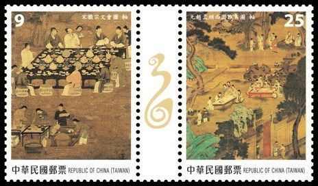 这4枚邮票选取了海上丝绸之路4件珍贵的文物。其中,凸瓣纹银盒现藏于西汉南越王博物馆、长沙窑青釉褐斑模印贴花椰枣纹执壶现藏于长沙铜官窑博物馆、波斯孔雀蓝釉陶瓶现藏于福建博物院、龙泉窑青釉菊瓣纹盘现藏于中国国家博物馆。邮票采用平面设计手法,主题突出、色彩淡雅,画面以灰色渐变为背景,细腻地刻画出4种文物的质感和美感。邮票画面中以剪影的形式表现了由福建省泉州海外交通史博物馆收藏的复原后的泉州湾宋代古船,背景表现了宋元时期海上丝绸之路路线示意图和海浪纹饰,多角度展现了海上丝绸之路概念。