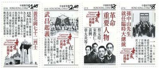 一九一一年辛亥革命,推翻了清朝政府,为帝制时代画上句号,亦标志着亚洲第一个共和国的诞生,为中国走向现代化奠下重要里程碑。二○一一年适逢辛亥革命百周年,香港邮政发行一套四枚邮票和一款邮票小型张,以资纪念。