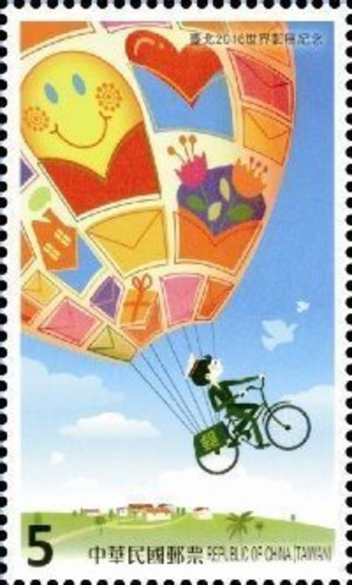「台北2016世界邮展」于本(105)年10月21日至26日假台北世界贸易中心展览一馆举行。邮展首日主题为「邮政日」,为呈现邮政服务之传承与创新,台湾中华邮政特以递送邮件之绿衣天使及承载便利箱之信鸽为主题,发行纪念邮票1组2枚及小全张1张,以志邮展盛事。图案简介如下: