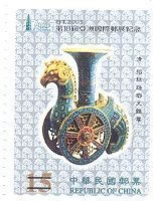 台北2005第18届亚洲国际邮展」将于本(94)年8月19日至24日在台北世界贸易中心展览大楼举行,为继1996年第10届亚洲邮展之后再度于我国举行的亚洲集邮盛会。为纪念本次邮展盛事,台湾中华邮政特以故宫博物院珍藏清代掐丝珐瑯天鸡尊古物为主题发行「台北2005第18届亚洲国际邮展纪念邮票」1枚,面值新台币15元,配合于8月19日邮展开幕日发行。为增加本组纪念邮票收藏性,除印制大全张(20枚邮票)外,另制作小版张(A5尺寸、内含6枚邮票)供顾客选购。