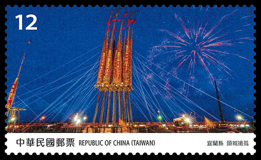 三、头城抢孤(面值12元):头城抢孤仪式在农历七月的最后一天,即鬼门关之夜展开,参赛者须攀爬涂满牛油的棚柱,直至抢下孤栈顶端顺风旗,过程激烈惊险、精彩万分,为宜兰在地盛大的宗教庆典活动。