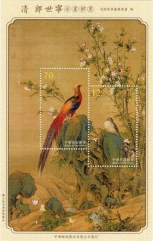 本(104)年为郎世宁来华300年,为配合国立故宫博物院以其生平与画艺为主轴办理「神笔丹青-郎世宁来华三百年特展」,台湾中华邮政特精选其5幅画作为题材,规划邮票4枚及小全张1张。内容如下: