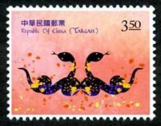 为迎接新年来临,台湾中华邮政续采值年生肖蛇图案,发行「新年邮票(101年版)」1组2枚及小全张1张。本组邮票图案延续99、100年版新艺术自由普普风概念,主图采黄色与紫色为蛇形主体色彩,衬以黑色的剪影效果;背景以象征新年喜气的红色渐层舖陈,并以黄色及橙色不规则点状随意泼洒于图案上,传达新年的温馨和欢喜气氛。图案简介如下: