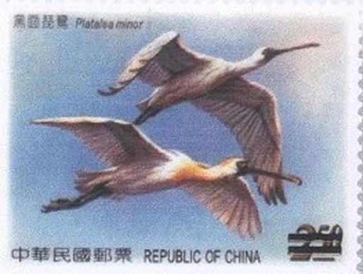 为使国人认识每年来台度冬的珍稀候鸟,并重视栖地之生态保育观念,台湾中华邮政特以迁徙、休息、展翅、觅食及群栖等生态行为印制「保育鸟类邮票-黑面琵鹭」1组4枚及小型张1张。本组邮票委请国立台湾大学森林系袁孝维副教授规划。