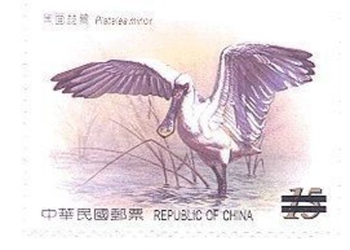 为使国人认识每年来台度冬的珍稀候鸟,并重视栖地之生态保育观念,台湾中华邮政特以迁徙、休息、展翅、觅食及群栖等生态行为印制「保育鸟类邮票-黑面琵鹭」1组4枚及小型张1张。本组邮票委请国立台湾大学森林系袁孝维副教授规划。