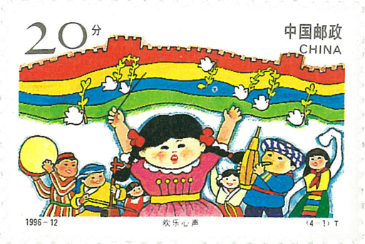 本套邮票是由上海华山美术学校16岁的张乐陆同学设计。他10岁时参加日本首届邮票图稿设计获优秀奖。这套邮票画面表现出儿童天真活泼及稚拙的童心,展现了当代儿童活动的广阔天地。