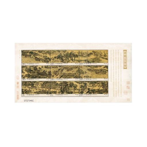 2004年10月18日,为了反映悠久灿烂的中国绘画艺术,国家邮政局发行了《清明上河图》特种邮票,全套版张型9枚。