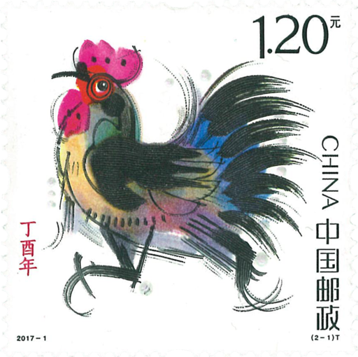 因为“鸡”与“吉”同音,鸡成为喜庆吉祥的象征。本套邮票图案表现的生肖鸡幸福美满的一家,既突出了雄鸡起舞、大吉大利的生肖贺岁主题,又展现了和谐幸福的家庭生活,延续了2016年《丙申年》生肖猴票“合家欢”的主题。意气风发表现的是一只昂首奔跑的公鸡形象,象征我国民族自信、经济腾飞,寓意“国”的概念。